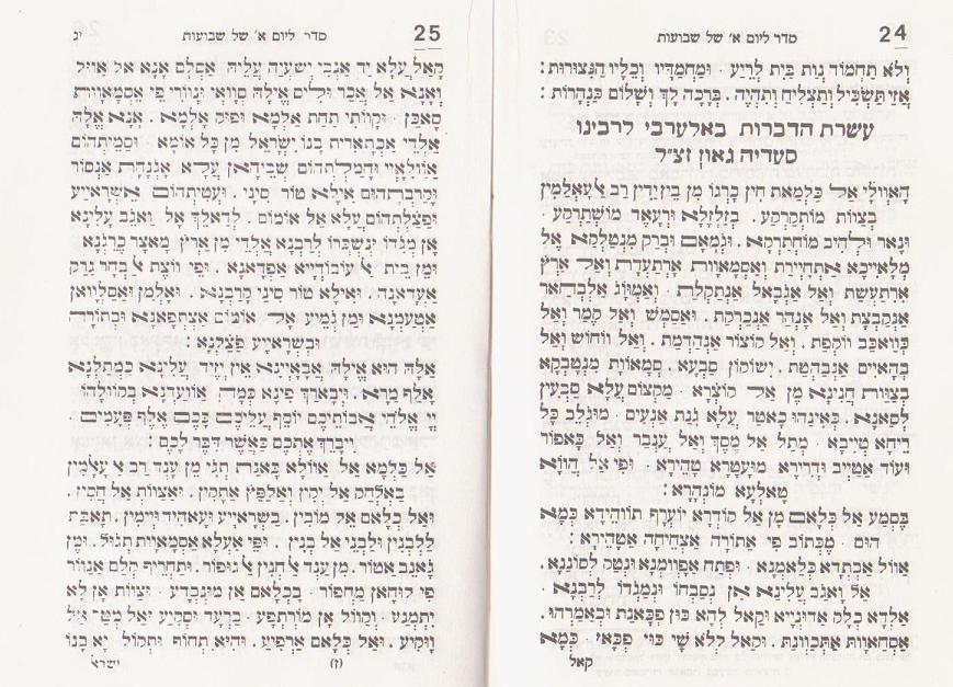 המנהג לקרא בשבועות* את "המדרש על עשרת הדיברות" של רס"ג שנכתב בערבית,