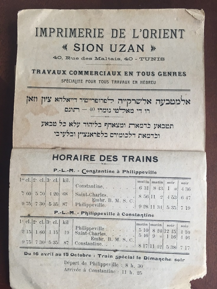 מספר עמודים, בהם מפורסמים, לוחות זמני הרכבות, במזרח אלג'יריה!
