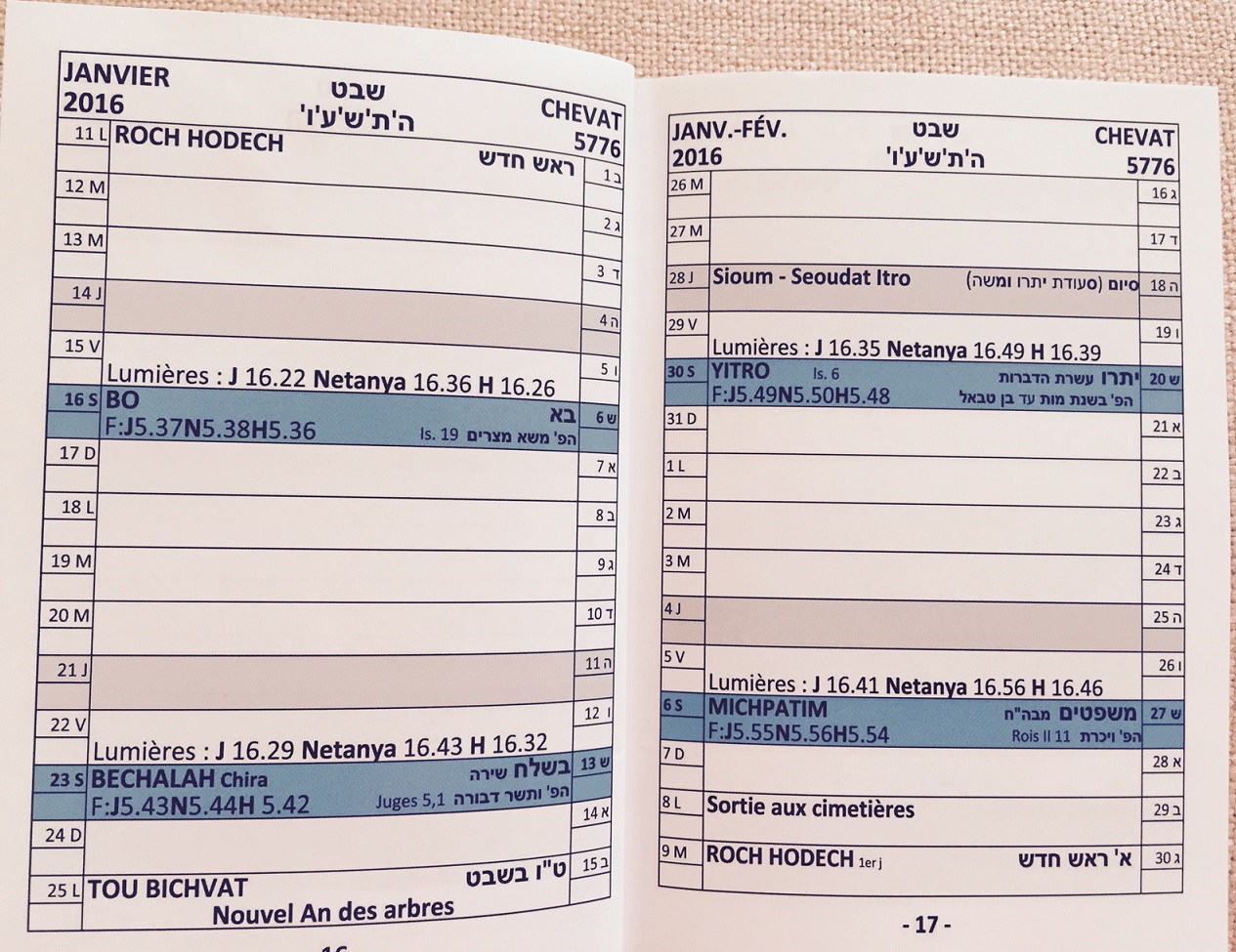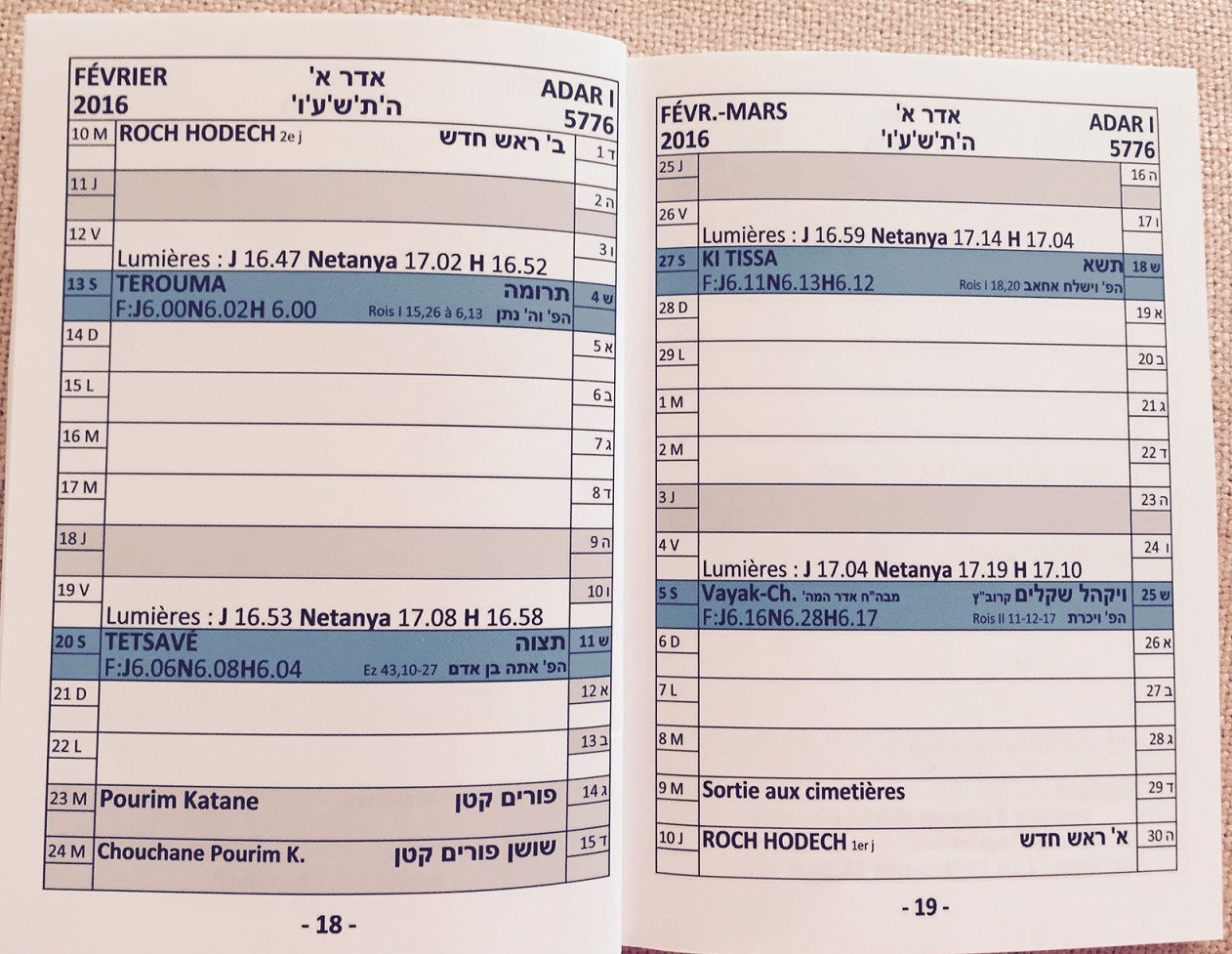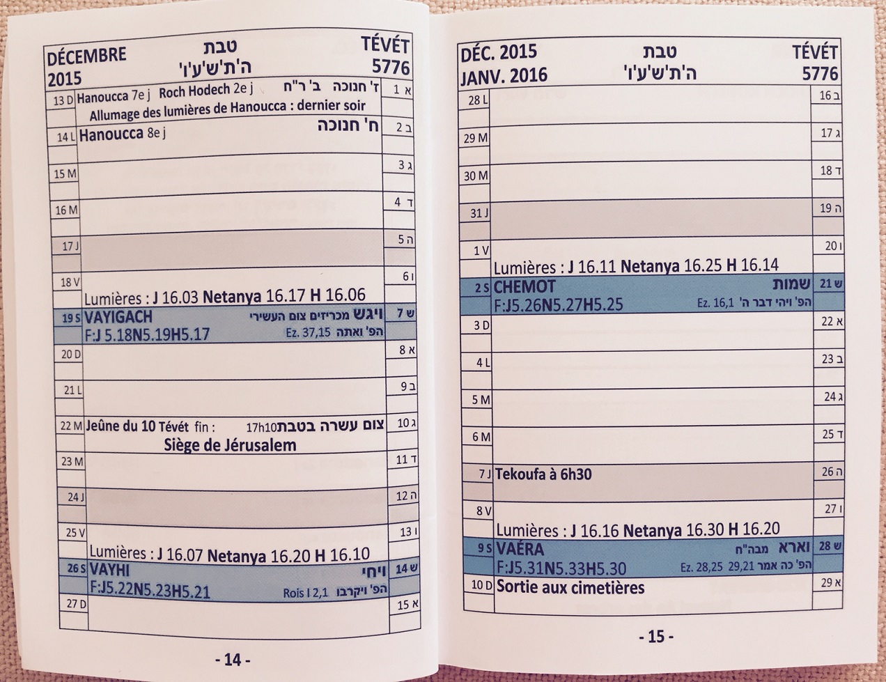 Annee 5776, 2015 - 2016
