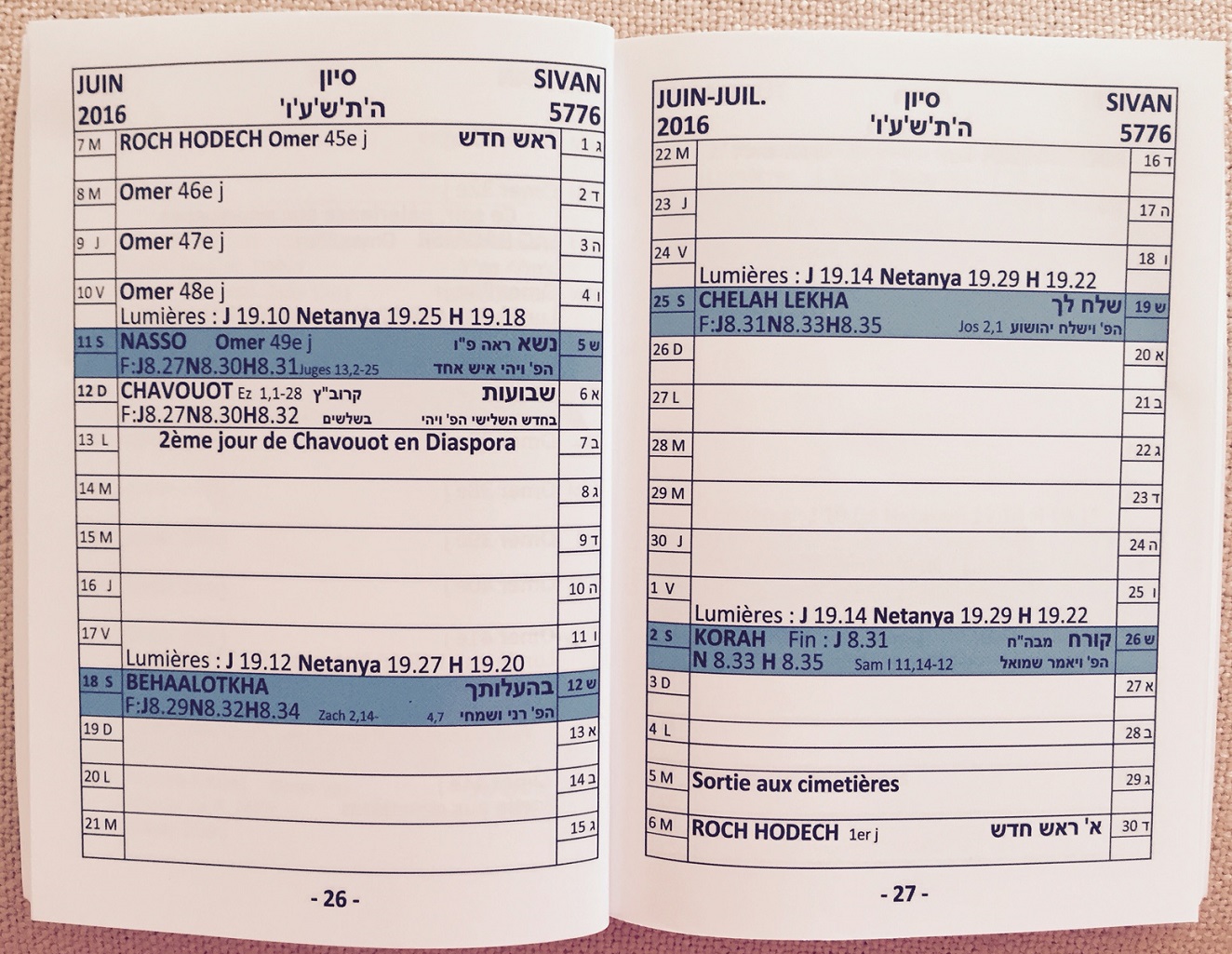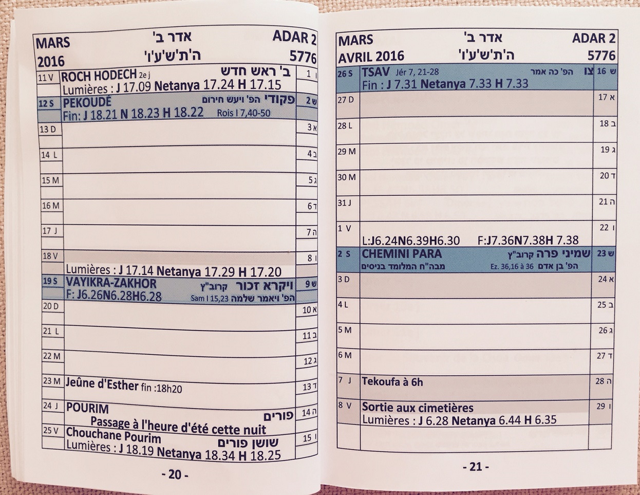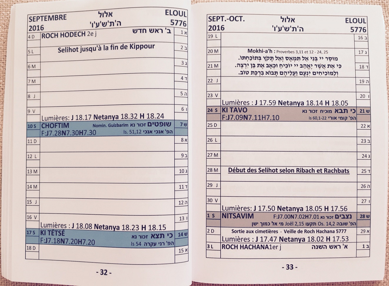 Annee 5776, 2015 - 2016