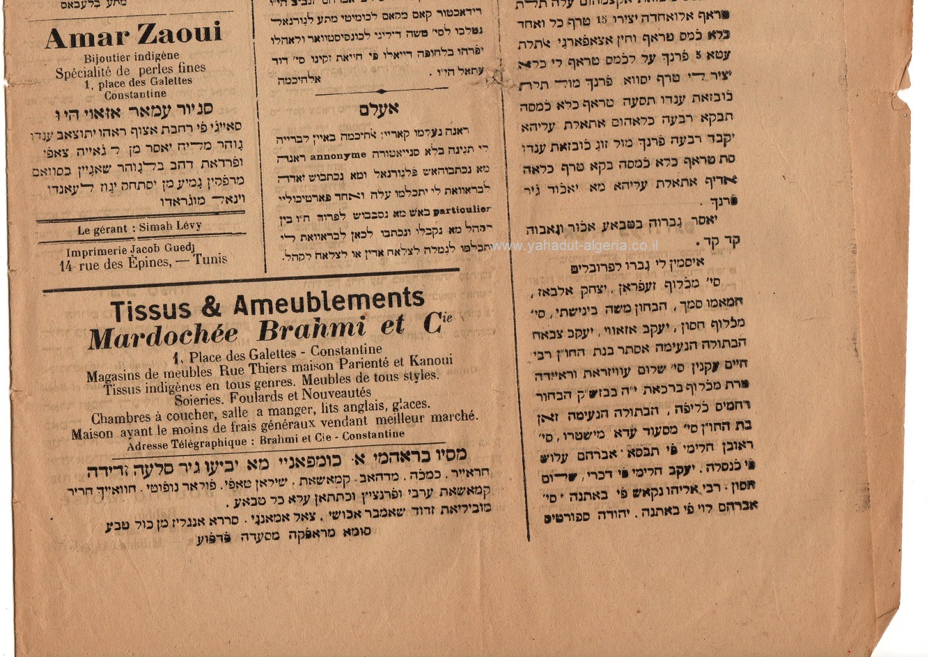 העיתון נשמר ע"י הרב אשר אטיאס (עטיאש) ז"ל,