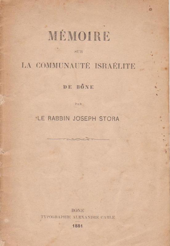 "MEMOIRE SUR LA COMMUNAUTE ISRAELITE DE BONE"