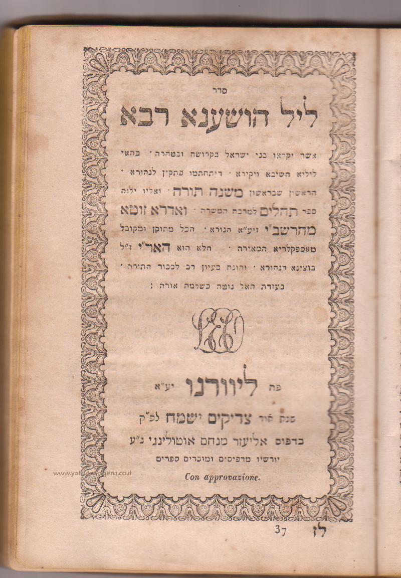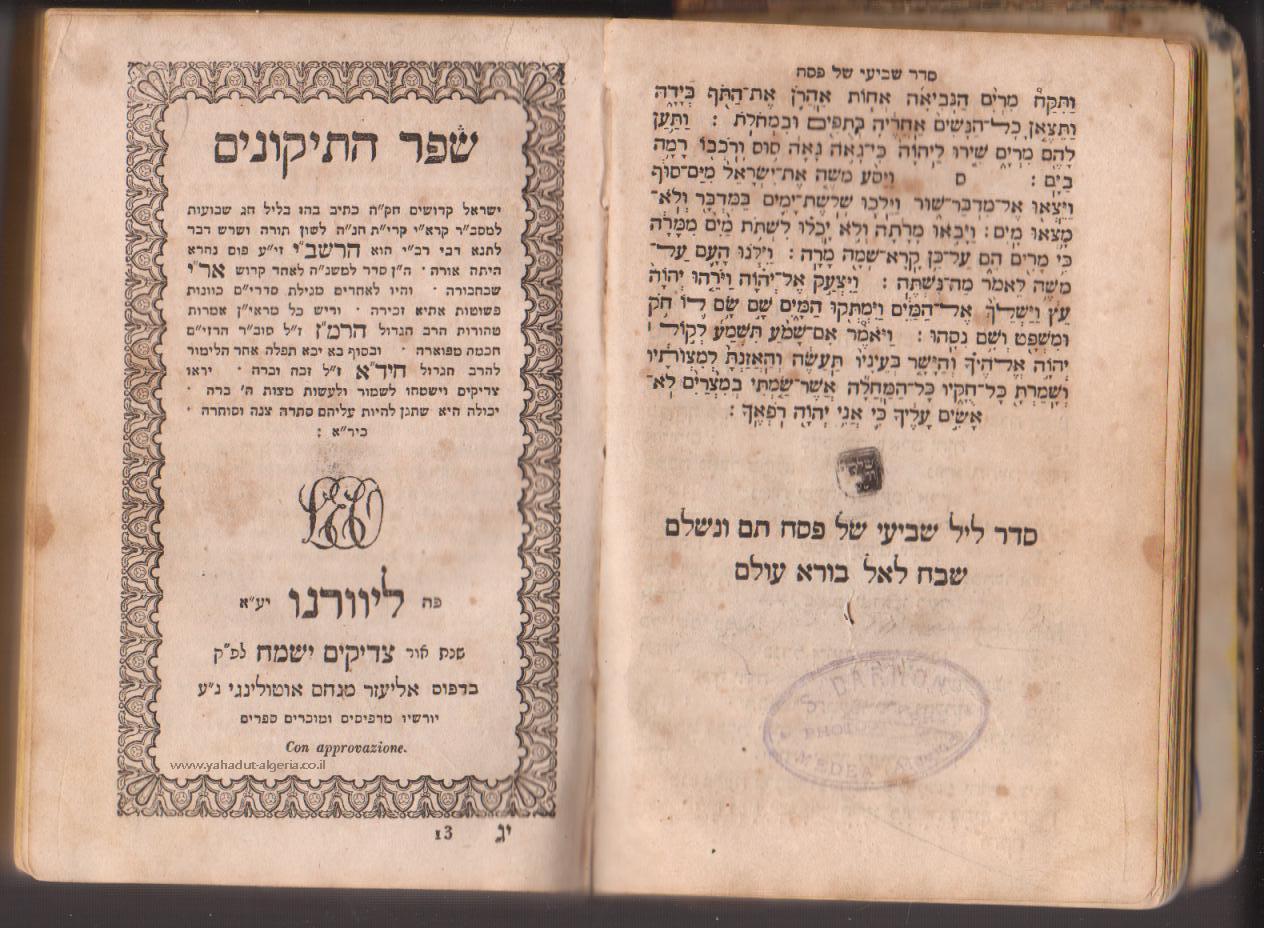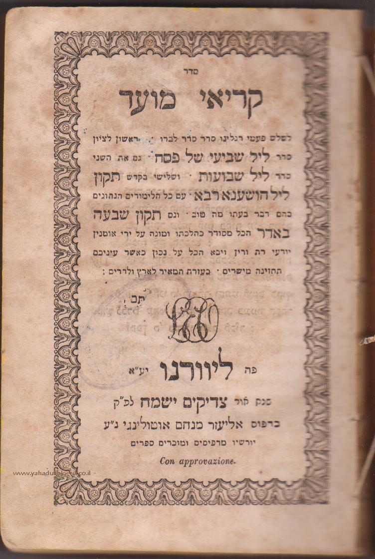 ספר "סדר קריאי מועד" נדפס בליוורנו בשנת 1851 - מתוך ספרייה משפחתית