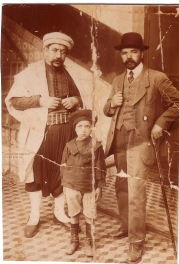 הרב אליהו שקרון ובנו מוריס בן ה - 6 ומימין אחיו חיים.