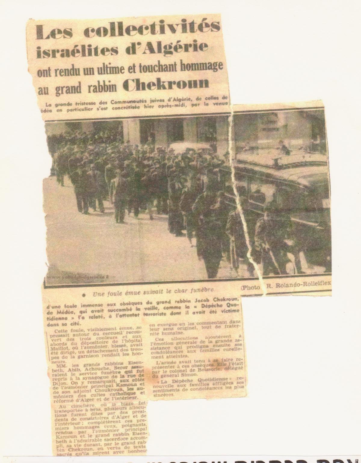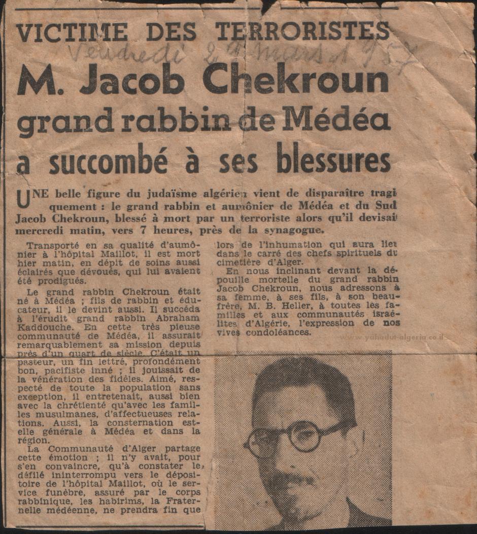 קורבן של הטרוריזם האלג'יראי במלחמתו נגד הצרפתים.