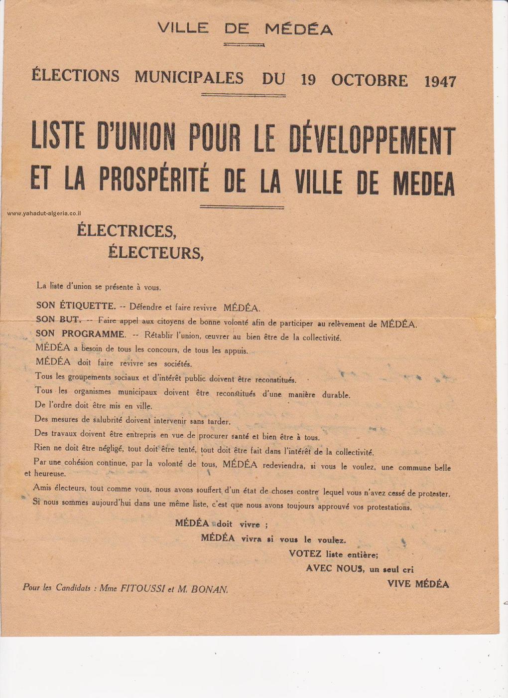 תעמולת בחירות לעיריית מדאה של מועמדים יהודים .Fr