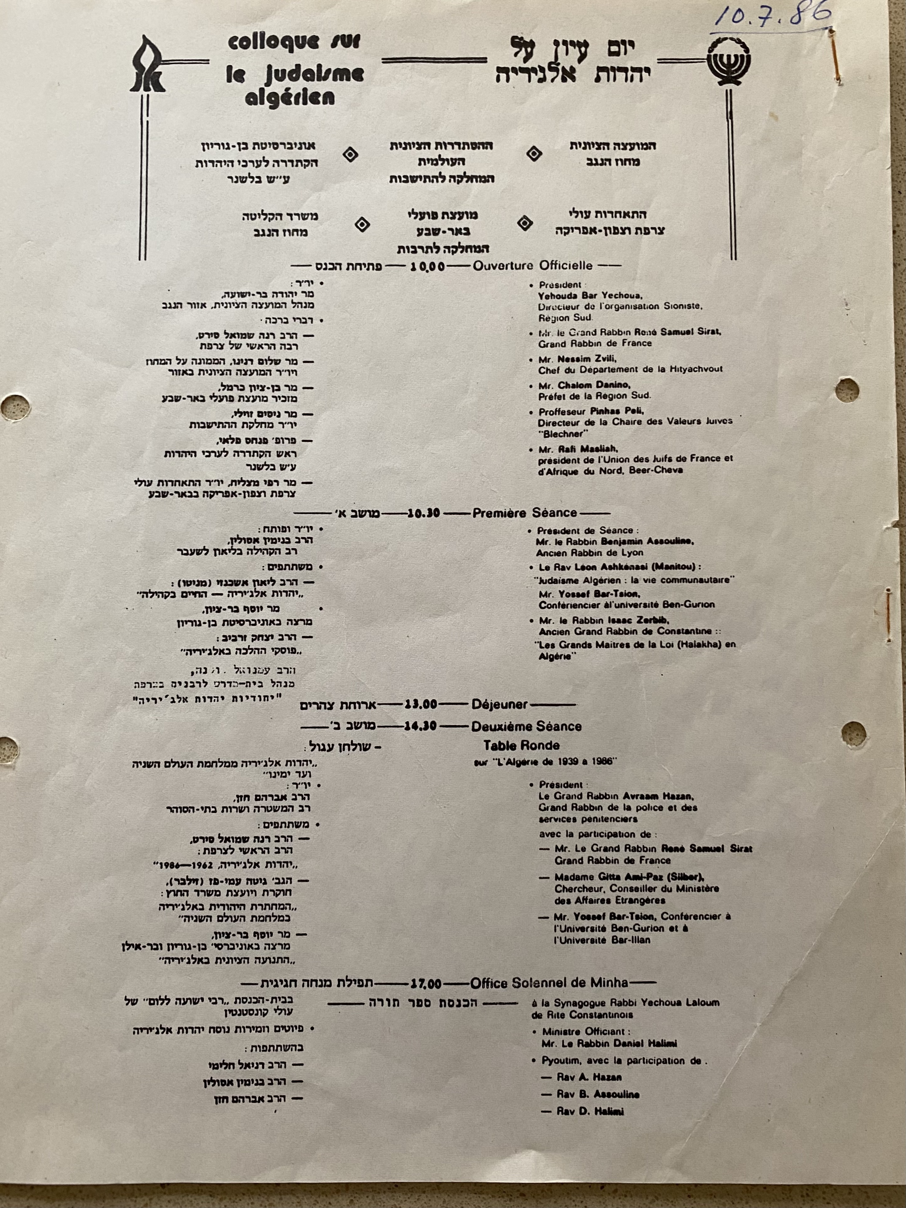 לרגל הוצאת הכרך אודות יהדות אלג'יריה.