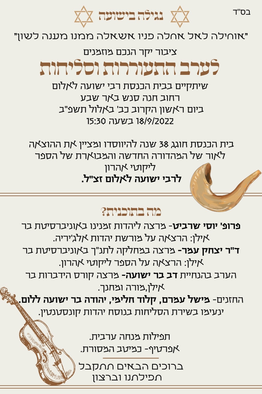 יתקיים אירוע בבית הכנסת בבאר שבע